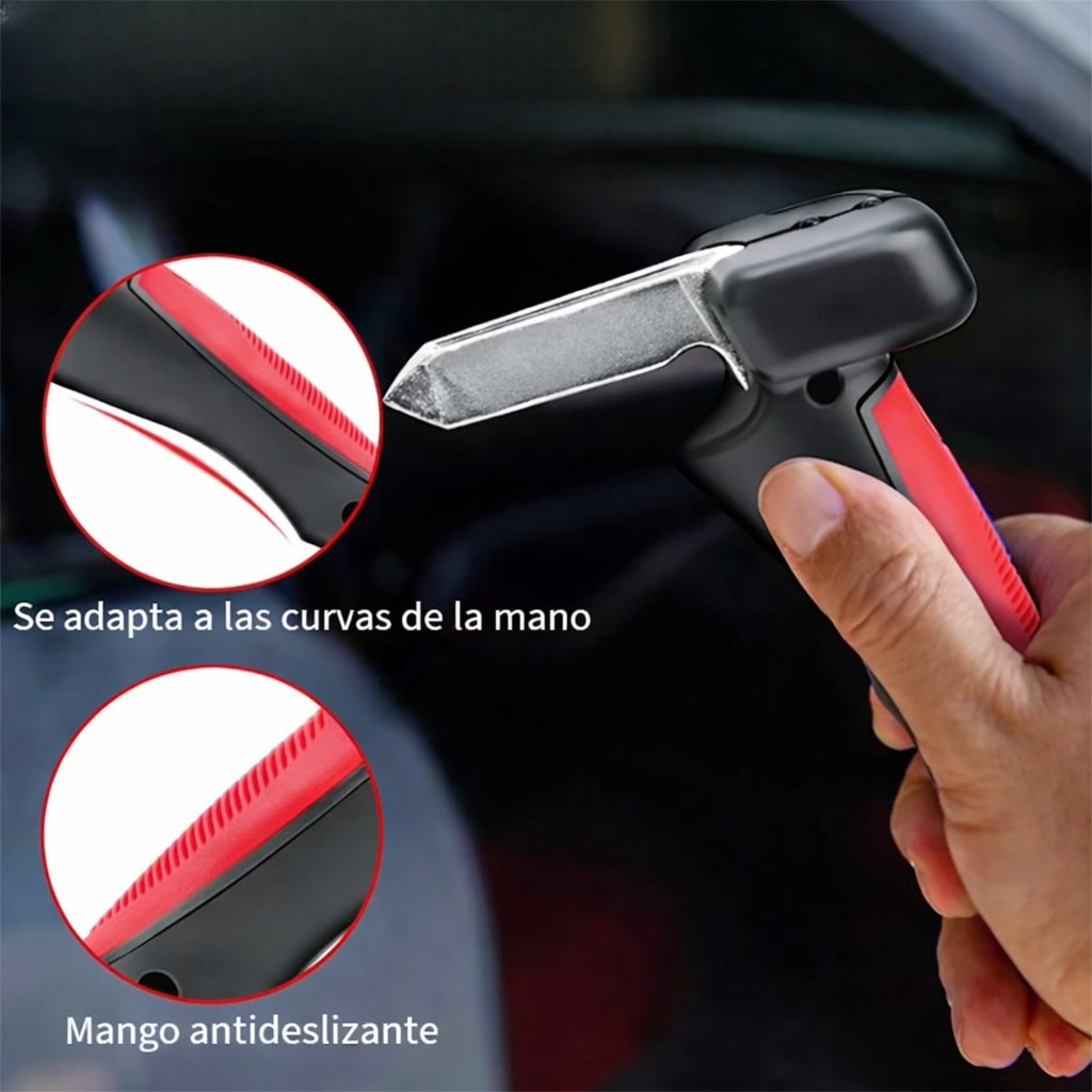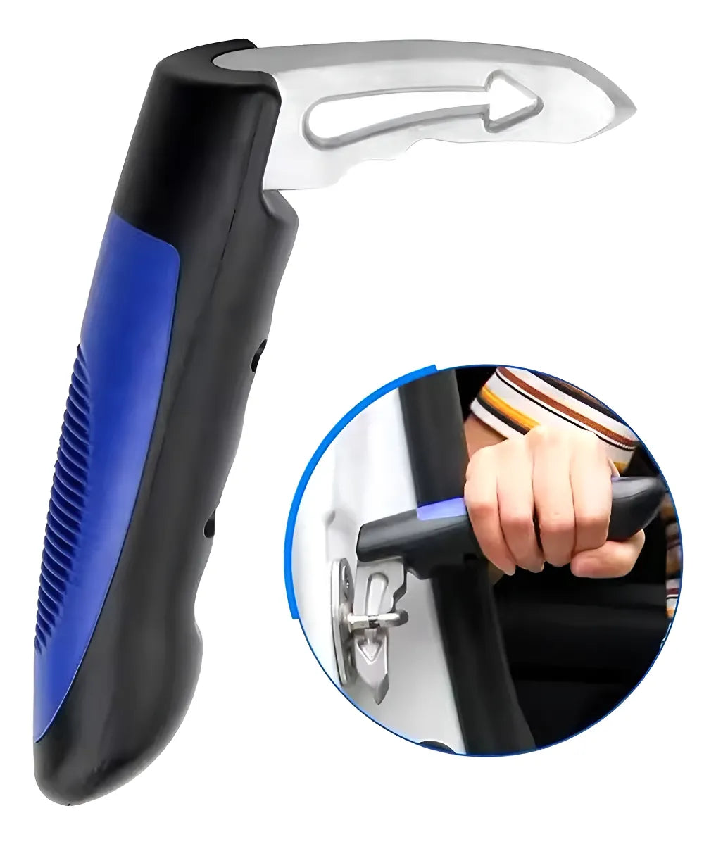 Integra cortador de cinturón y rompe vidrio de acero templado, listos para activarse en segundos cuando más importa.